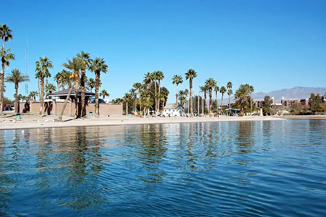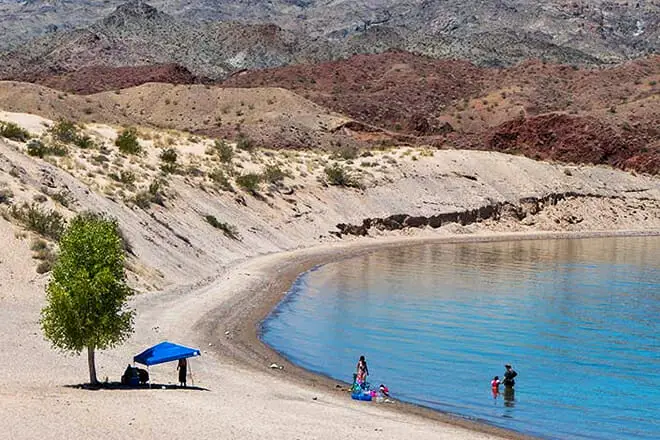 Con preciosas arenas blancas y vistas estelares de las montañas, esta playa de Lake Havasu es una tentadora escapada de fin de semana desde Las Vegas.