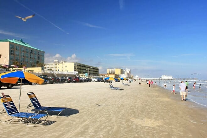 Daytona Beach en la costa atlántica está a una hora de Orlando. Además de las carreras de autos, esta ciudad también tiene una de las playas más bonitas de la zona.