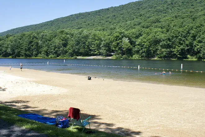 La fabulosa playa de arena de Laurel Hill State Park le brindará una aventura en el océano en el corazón de Pensilvania. También hay un hermoso muelle donde puedes saltar al agua fresca y refrescante del lago.