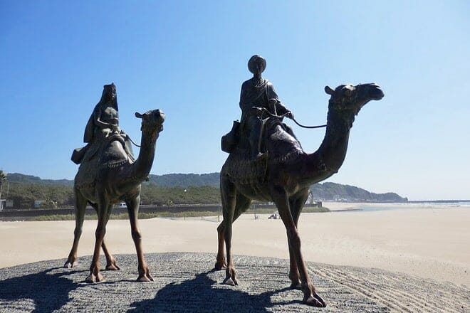 No hay playa cerca de Tokio como Onjuku. De hecho, es la única playa en todo el país donde puedes ver estatuas de camellos, así como un príncipe y una princesa árabes. Sin mencionar que las suaves arenas parecen joyas brillantes bajo la luz de la luna.