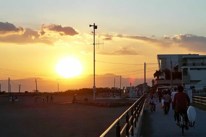 Ubicada en la costa de la bahía de Sagami, esta playa está a solo una hora en tren desde la estación de Tokio.