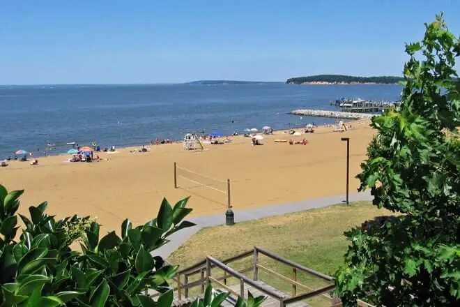 Breezy Point Beach es un tramo de media milla de arena blanca y polvorienta a lo largo de la bahía de Chesapeake.