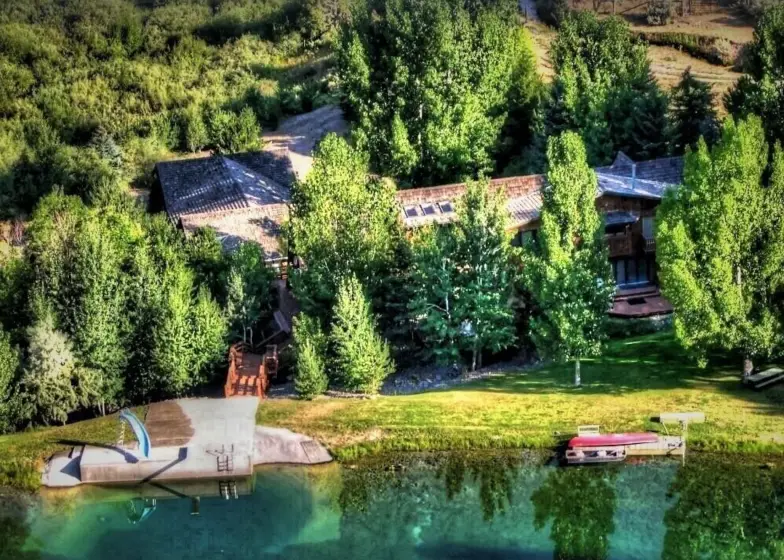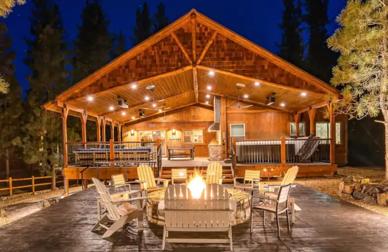 Esta cabaña de 7,000 pies cuadrados tiene capacidad para 25 (o hasta 40 con una tarifa adicional), ubicada en el hermoso Wolverine Canyon, sin vecinos cerca. Disfrute de un retiro estilo centro turístico que incluye un cine en casa de alta gama, Dish Network y Hughes Satellite Wi-Fi junto con una sala retro de la década de 1950 que tiene una mesa de billar, un televisor de pantalla grande y juegos. Pero durante el día probablemente querrá pasar la mayor parte de su tiempo al aire libre con una canoa, un bote a pedales, un tobogán de agua, un trampolín y otros juguetes acuáticos junto con un campo de golf Frisbee de 9 hoyos, todo incluido. Después de tanto jugar, apreciará estar a punto de relajarse en el jacuzzi bajo las estrellas.