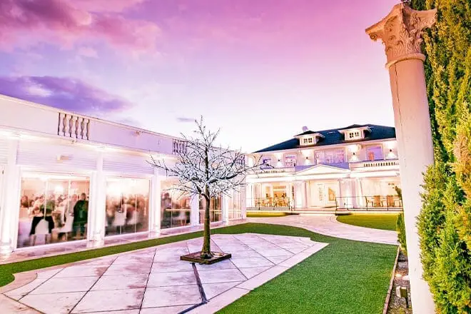 Tiene un ambiente majestuoso donde puede disfrutar de sus comidas en el interior o en un ambiente íntimo y hermoso al aire libre. Para eventos especiales como bodas, reuniones familiares, fiestas de cumpleaños y similares, este restaurante ofrece elegantes salones de baile en alquiler.
