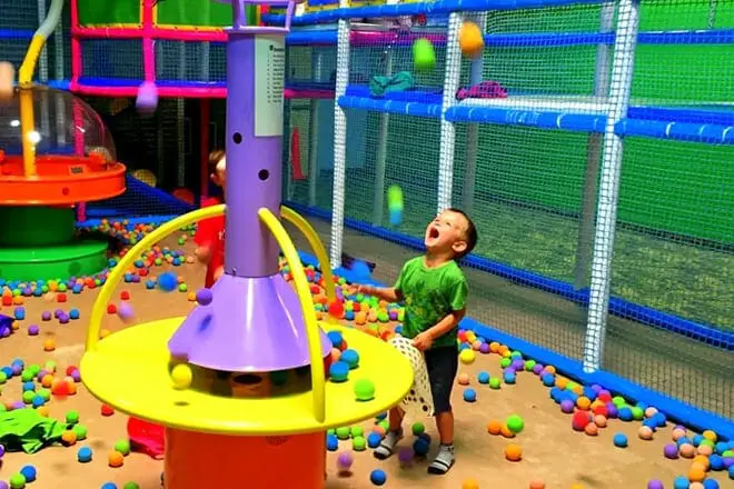 Conéctese con sus niños mientras juegan juntos en Seascape Kids Fun. Por ejemplo, divertirse en el bolígrafo, deslizarse por toboganes de diferentes longitudes y tamaños, lanzar bolas de espuma, subir por las zonas de escalada, saltar en las atracciones inflables y mucho más.