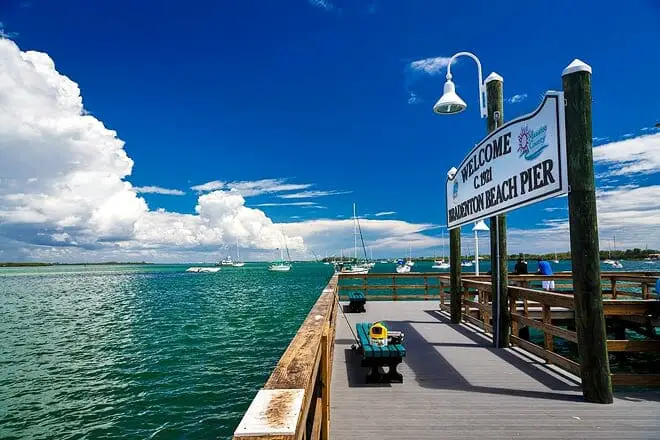 Bradenton Beach, incorporada en 1952, es una pintoresca ciudad costera en la zona sur de la isla.