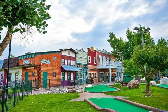 Old West Town Miniature Golf es un campo de golf en miniatura de 18 hoyos en un entorno del Viejo Oeste.