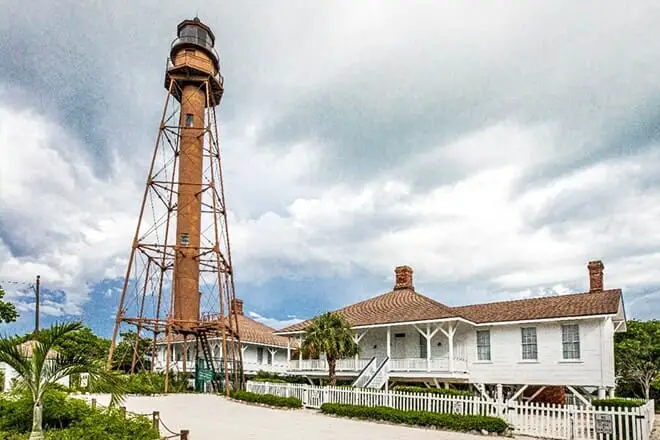 El faro de Sanibel o el faro de la isla de Sanibel, que se encendió por primera vez en 1884, fue uno de los primeros en Florida. Se eleva a unos 98 pies y cuenta con un marco de hierro.