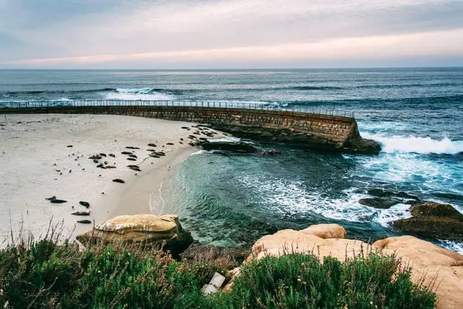Children's Pool es una pequeña playa curva protegida por un muro al final de Jenner Street. Una parada aquí es una de las mejores cosas gratis para hacer en La Jolla.