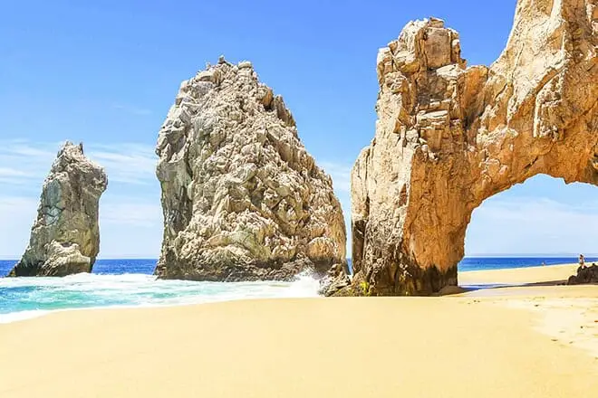Situada en el extremo sur de Cabo San Lucas, se encuentra una formación rocosa que probablemente hayas visto antes en postales. Conocido como “Fin de la Tierra”, el Arco de Cabo San Lucas es el punto donde el Océano Pacífico se convierte en el Golfo de California.