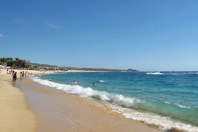 También conocida como Playa de las Dunas o Playa el Médano, comienza en el lado este del puerto y se extiende a lo largo de la Bahía de Cabo San Lucas hasta Villa del Palmar .