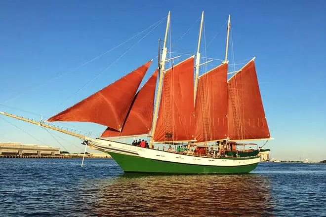 ¿Te apetece hacer cosas únicas y divertidas en Norfolk, Virginia? Luego, le sugiero que disfrute de un pintoresco crucero por las aguas de Norkfolk a través del American Rover. Famoso por sus velas rojas, este crucero también incluye narraciones perspicaces, 2 salones, una tienda y un bar.