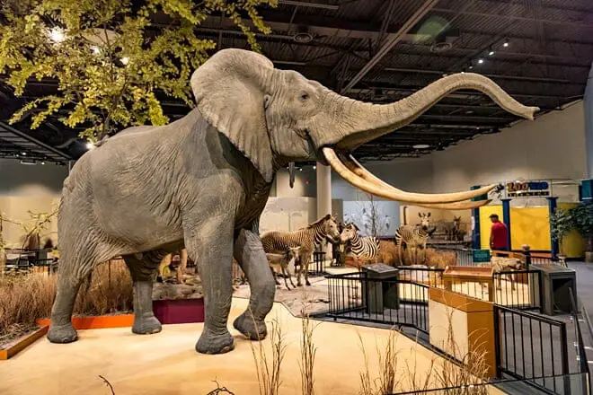 Cuando llueva o haga frío, pase por el museo para ver una destacada colección de animales aparentemente en movimiento, junto con exhibiciones de varios ecosistemas, desde la llanura africana hasta un río tropical.