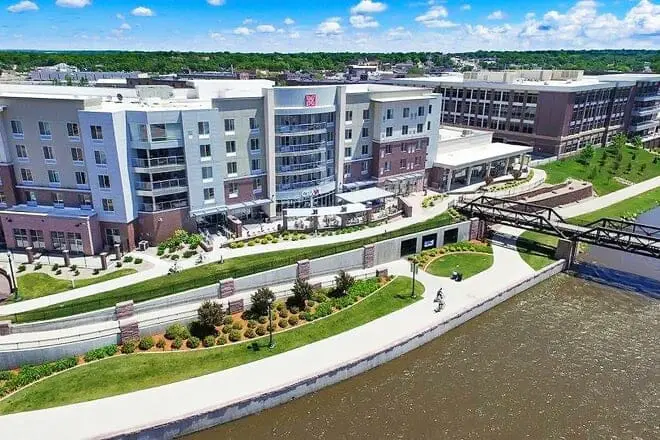 Ubicado en el corazón del centro de la ciudad y con vista al resplandeciente río Big Sioux, Hilton Garden Inn lo coloca justo en el medio de la acción de la ciudad, mientras disfruta de estacionamiento subterráneo gratuito, amplias habitaciones, una piscina cubierta, gimnasio, un restaurante en el lugar, y más.
