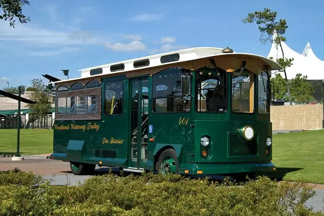 El Woodlands Waterway Trolley es un servicio de transporte público que sigue una ruta de 4.1 millas.