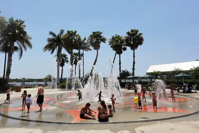 Deje que los niños jueguen y se refresquen en sus refrescantes fuentes rociadoras. También puede disfrutar de un picnic, pescar y observar algunos animales salvajes, como manatíes y delfines.