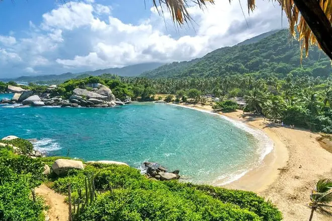 La playa del Parque Nacional Natural Tayrona es una costa fantástica y una de las playas más bonitas del país. Cuenta con aguas cristalinas y azules, una costa arenosa con altas palmeras y grandes formaciones rocosas.