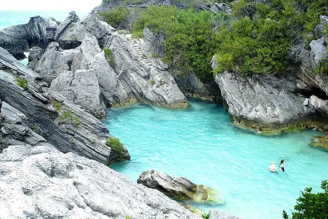 Aún mejor, el agua cristalina de la piscina natural alberga bancos de peces, lo que la convierte en la mejor playa para nadar en las Bermudas.