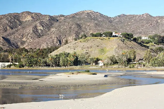 Malibu State Beach se encuentra al final de Malibu Creek, donde se encuentra con el océano.