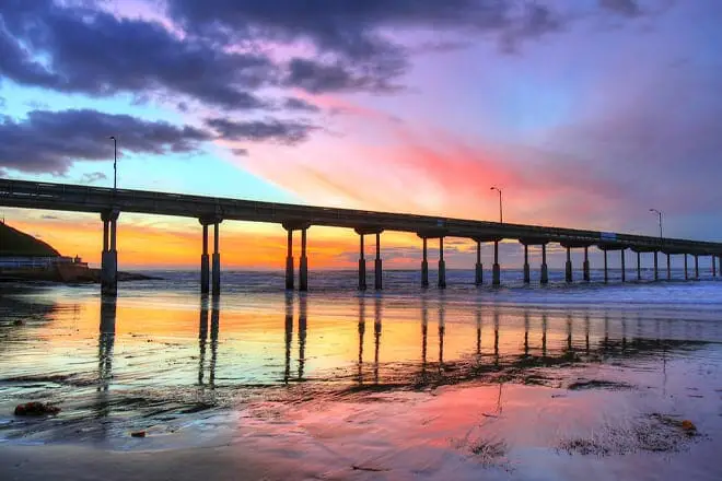 Las aguas del Océano Pacífico se encuentran con el muelle y el paseo marítimo de San Diego en un beso pintoresco, incluso más hermoso con un amanecer o un atardecer. Observe esta convergencia usted mismo en Pacific Beach y disfrute de las tiendas que bordean el malecón.