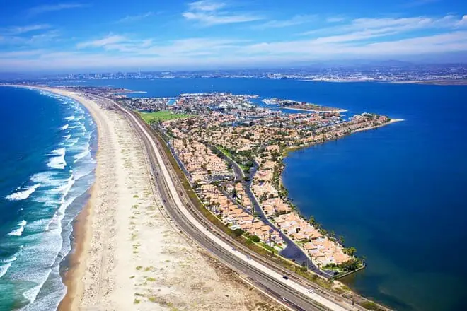 Hacia el norte, en el condado de San Diego, hay otra comunidad de playa que ofrece una laguna de 900 acres y una costa de dos millas.