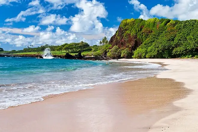 De hecho, Road to Hana contiene un grupo de maravillas tropicales. Hamoa Beach es una de ellas, una hermosa costa en forma de media luna cubierta por arena blanca lechosa.