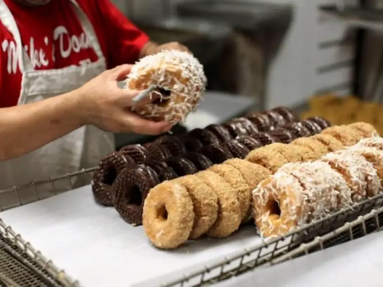 Mike's Donuts, un restaurante familiar sin lujos, ha existido durante varias décadas y ofrece alrededor de 35 sabores frescos. Deléitese con el toque de mármol y la gelatina glaseada o pruebe el sabor a manzana, que está relleno con rodajas de manzana. No encontrará brebajes locos aquí, en su lugar, descubrirá una colección de donas clásicas perfectamente hechas que son crujientes por fuera y suaves y escamosas por dentro.
