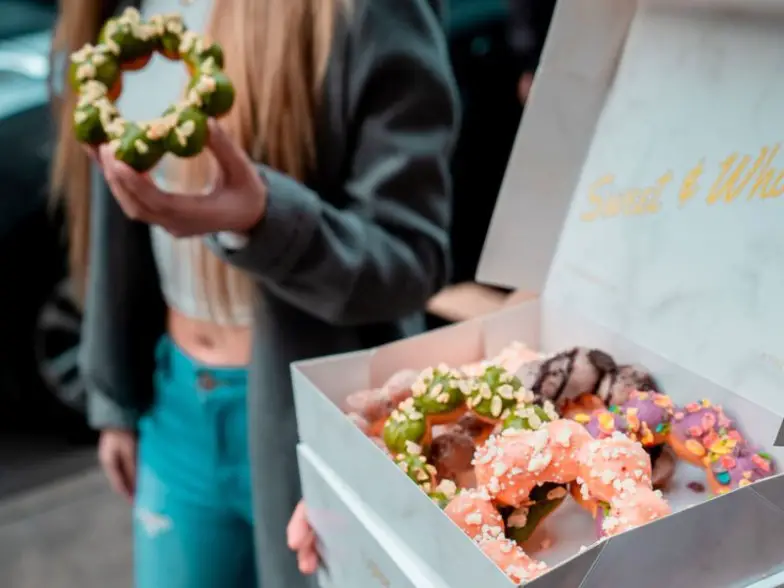 Asequibles y atractivas, las donas de Moe's Doughs son difíciles de resistir. Pruebe la rosquilla francesa o la rosquilla rellena de frambuesa, mientras que la rosquilla de caramelo, el pistacho, el volcán de terciopelo rojo y las rosquillas de pastel de fresa lo harán volver por más. Si necesita algo para alegrar su día, no puede equivocarse con un pastel de lima, una colorida rosquilla de pastel de arcoíris o una rosquilla de pastel de queso con caramelo exageradamente decadente.