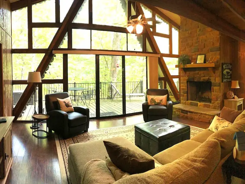 Situada cerca de un estanque de un par de acres, la cabaña está rodeada de naturaleza y vida silvestre. La construcción clásica brinda esa sensación terrenal. El interior es bastante espacioso, y con una sala de literas, hasta ocho personas pueden quedarse aquí. Esta parte particular de Missouri está cerca de la casa de la infancia de Walt Disney.