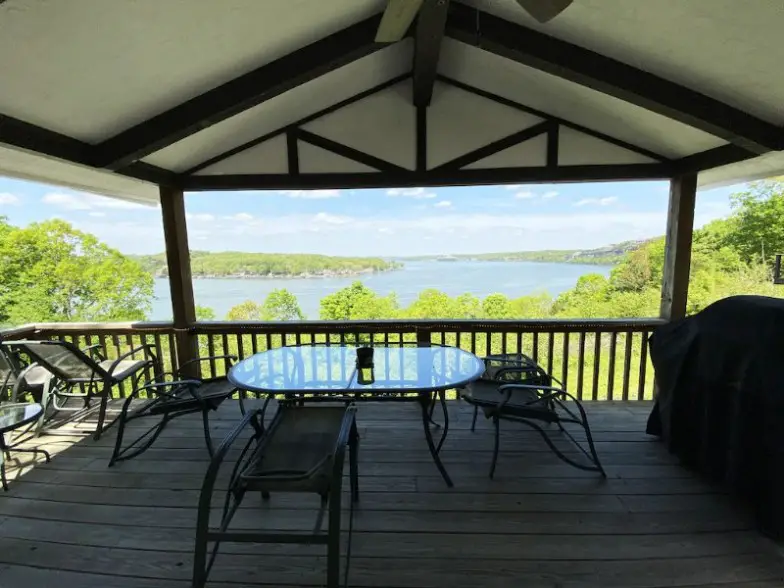 Los huéspedes estarán a pocos pasos del lago Table Rock cuando se alojen en esta cabaña auténtica. Serpentea entre los árboles durante un breve minuto para llegar al muelle. Los huéspedes también tienen la opción de utilizar el amarre de barco reservado. Vaya en kayak, pesque, nade: todas las cosas divertidas que se pueden hacer en el lago.
