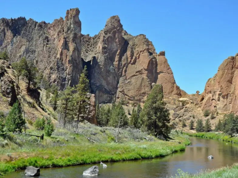 Another unforgettable place to hike in Oregon is Smith Rock State Park. The Canyon to Rim Loop here is about 3.4 miles round-trip from the welcome center. You’ll see rock climbers here, as well as wildlife, impressive canyon views, and maybe even some bald eagles. Other top hikes at this scenic state park are the Reverse Misery Ridge Loop that’s 3.7 miles, Summit Loop that’s 7.3 miles, and the Homestead to North Point Loop that’s 1.8 miles long.