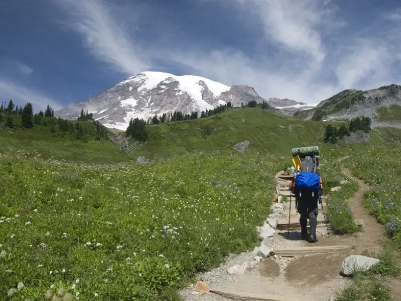 Una de las mejores caminatas en el noroeste del Pacífico es la caminata de la montaña Burroughs, que es una caminata de ida y vuelta de 4.7 millas cerca de la ciudad de Ashford, Washington. Tiene un desnivel de 900 pies y toma alrededor de 2.5 horas para hacerlo. Te encantará esta caminata por sus vistas a la montaña y por descubrir una de las regiones de tundra más accesibles en las Cascadas. Sunrise Camp está a una milla del área de estacionamiento y es un buen lugar para estar si solo desea caminar una distancia corta antes de instalarse. Esta montaña lleva el nombre del naturalista y ensayista John Burroughs.