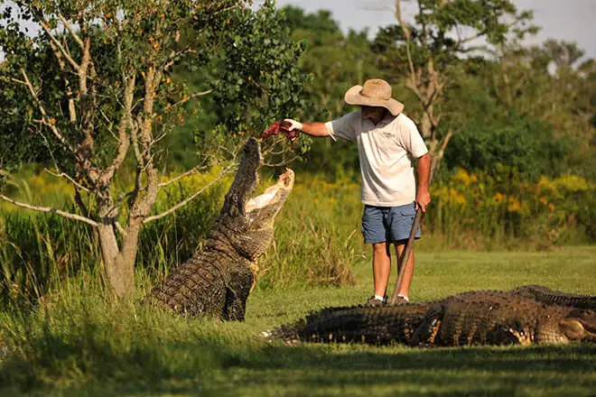 Prepárese para una experiencia emocionante y asombrosa en Alligator Valley. Aquí, puedes ver a los entrenadores alimentar a los caimanes y ver a los animales nadar en el agua turbia, tomar el sol en la orilla e incluso conocer de cerca a las criaturas mientras sostienes un caimán bebé.