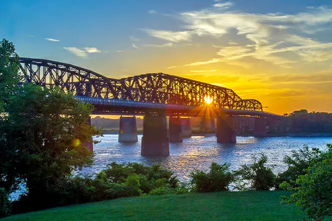 Big River Crossing en West Memphis es el puente ferroviario/peatonal activo más largo de los EE. UU. Tiene casi una milla de largo a través del río Mississippi.