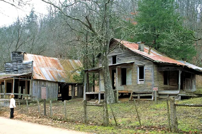 Rush en Yellville es un pueblo fantasma que se encuentra dentro del Parque Nacional Buffalo River. Se estableció en el siglo XIX y se abandonó en la década de 1960.