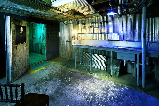 O puedes bajar al sótano para ver la morgue del curandero. Incluso tiene una mesa de autopsias todavía sentada allí.
