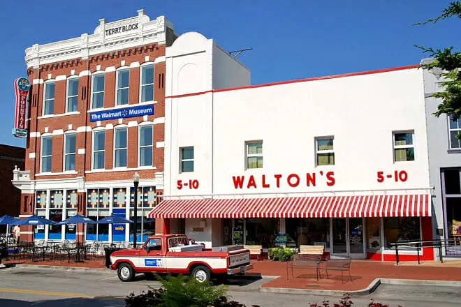 En Bentonville, el Museo Walmart está ubicado en la primera tienda Walmart, la tienda de 5 a 10 centavos de Sam Walton.