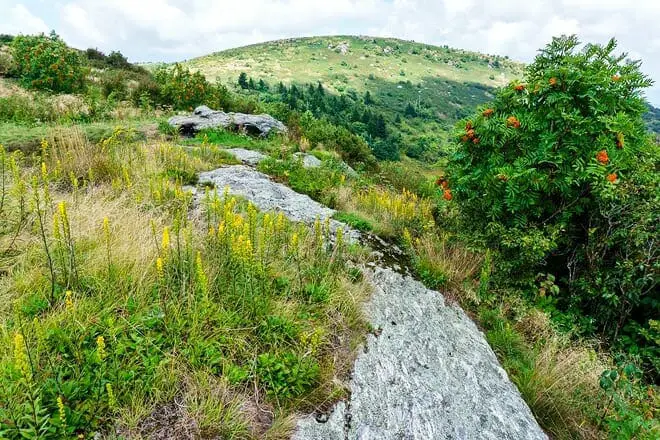 Haga una parada en la milla 420.2 cuando esté en Blue Ridge Parkway para caminar por Black Balsam Knob. Tiene increíbles vistas de las montañas calvas del sur de los Apalaches. Te sentirás como si estuvieras en los Alpes.