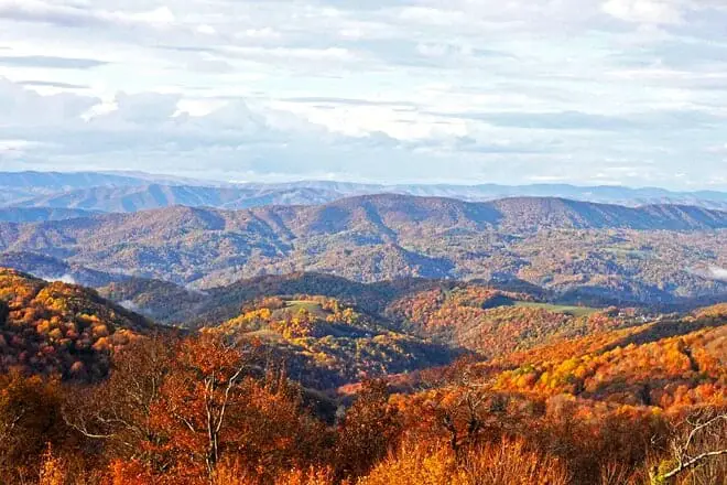 Blue Ridge Parkway es el parque lineal más largo del país y es conocido por sus vistas panorámicas. Tiene una duración de unos 755 km.