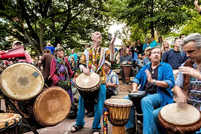 Cuando esté en Asheville, haga lo que hacen los lugareños. Todos los viernes, puedes encontrar docenas de bateristas reuniéndose en Pritchard Park. Aquí, disfrutarás de una jam session improvisada con congas, dunduns y todo tipo de instrumentos de percusión.