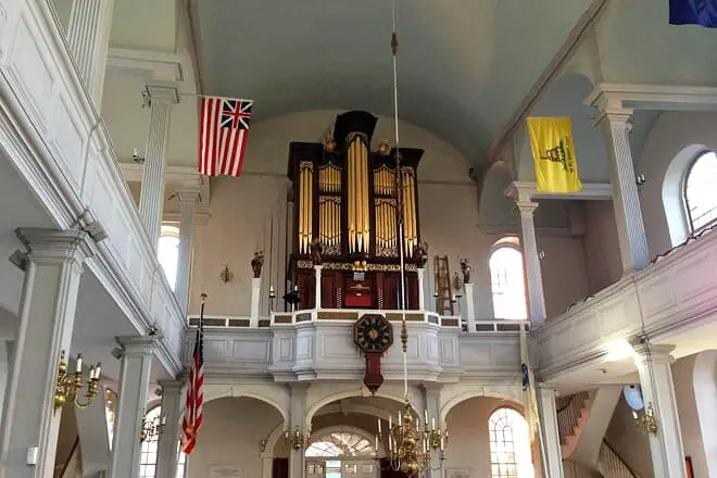 Construida en 1723, la Iglesia Old North jugó un papel crucial al comienzo de la Revolución Americana. Paul Revere instruyó a los patriotas a colgar dos linternas en el campanario de la iglesia y encenderlas de acuerdo con la famosa frase bien memorizada por los escolares estadounidenses de hoy.
