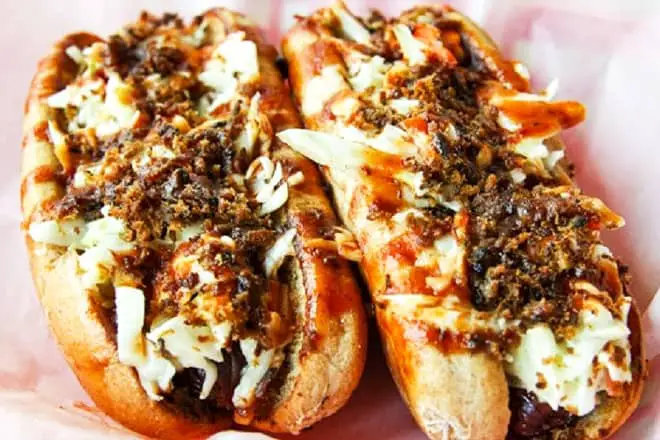 Haga que su visita valga la pena deleitándose con sus salchichas completamente cargadas y costillas ahumadas con nogal. También te encantarán sus acompañamientos simples pero deliciosos, como macarrones con queso, pan de maíz y puré de papas.