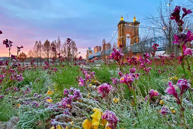 Comience su caminata urbana en el puente colgante de Roebling, donde puede disfrutar de vistas dignas de Instagram. Luego, siga el sendero y pase por lugares interesantes, como Sawyer Point y una fuente. También puede relajarse en un columpio estilo porche y ver barcazas y barcos pasar por el río Ohio.