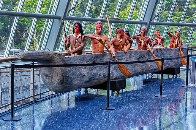 El Museo Pequot, el museo nativo americano más grande del mundo, se encuentra en un antiguo bosque de cedros y es propiedad y está operado por la tribu Mashantucket Pequot.