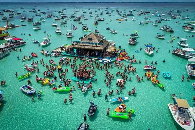 Ninguna lista de las mejores cosas para hacer en Destin, Florida, está completa sin Crab Island. Este banco de arena, que alguna vez fue una isla con forma de cangrejo, está lleno de diversión playera y vida marina. Y solo se puede acceder al banco de arena en barco. Sin embargo, no se preocupe, ya que puede alquilar uno fácilmente en el puerto deportivo de Destin.