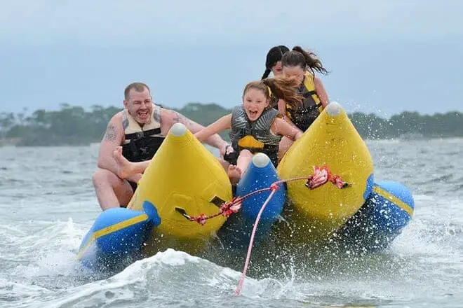 Su paseo en bote banana hará que tu adrenalina se dispare, mientras tratas de quedarte y aferrarte al inflable con forma de plátano. Sin embargo, perder el control en este recorrido no será una mala experiencia. Después de todo, volará hacia las impresionantes aguas color esmeralda de la Costa del Golfo.