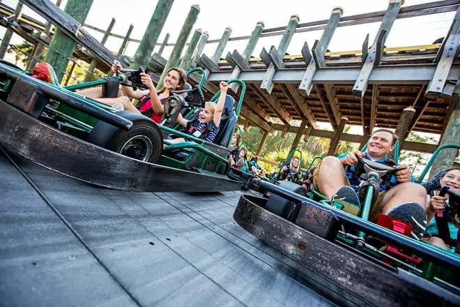 Sacia tu sed de actividades estimulantes con SkyFlyer y Hurricane 360. También te encantará la atracción característica del parque, la pista de karts Wild Woody de 3 niveles.