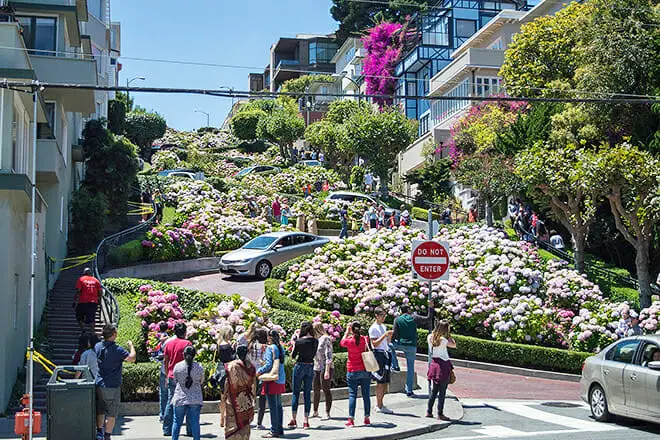 Lombard Street se encuentra entre Leavenworth Street y Hyde Street. Es conocida como 'la calle más torcida del mundo'.
