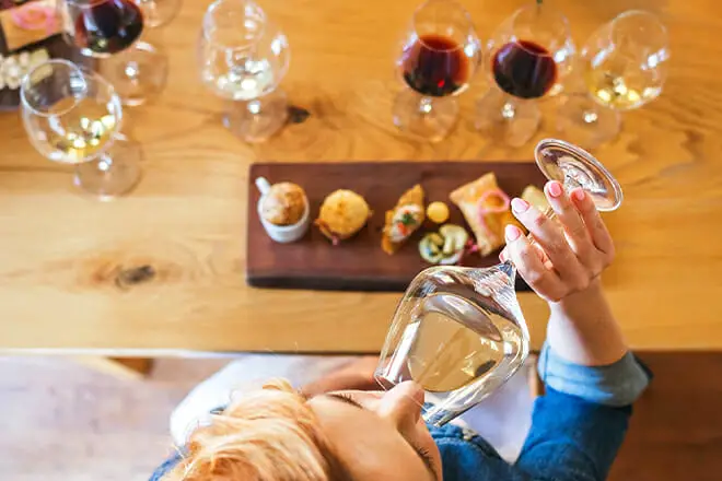 Una de nuestras cosas favoritas para hacer en el Área de la Bahía para parejas es probar la impresionante selección de vinos de la zona. Farmstead en Long Meadow Ranch es un excelente lugar para esto.