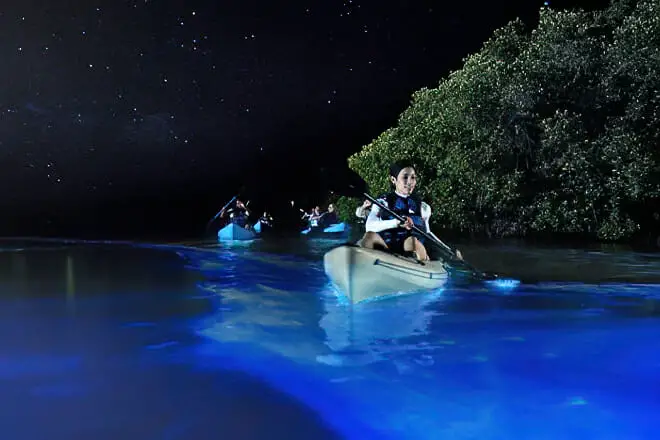 Haga que su visita a la "bio-bahía" sea memorable realizando un recorrido en kayak por sus espléndidas aguas. Además, intente visitarlo en una noche con poca o ninguna luz de luna, ya que la bioluminiscencia es más impresionante en la oscuridad casi total.
